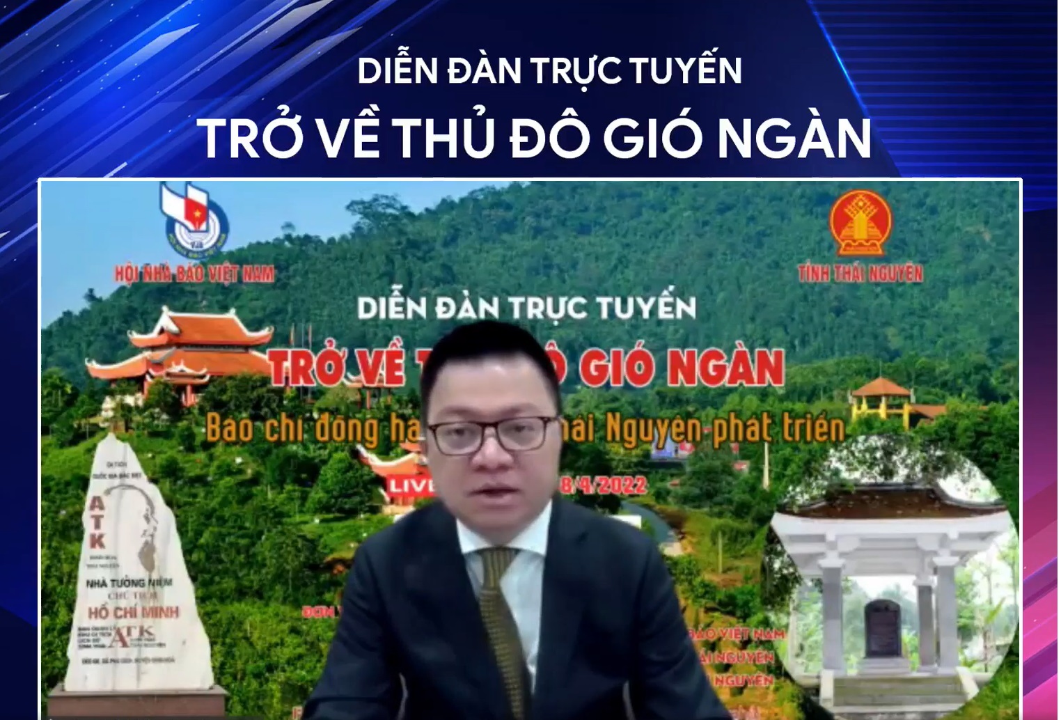Phát biểu khai mạc Diễn đàn, nhà báo Nguyễn Đức Lợi, Phó Chủ tịch Thường trực Hội Nhà báo Việt Nam cho biết: Hàng năm, vào dịp 21/4, Hội Nhà báo Việt Nam hành hương về nguồn tại xóm Roòng Khoa, xã Điềm Mặc, huyện Định Hóa, tỉnh Thái Nguyên, nơi ra đời của Hội Nhà báo Việt Nam. Năm nay, do ảnh hưởng của dịch COVID-19, Hội Nhà báo Việt Nam phối hợp với UBND tỉnh Thái Nguyên tổ chức Diễn đàn trực tuyến “Trở về Thủ đô gió ngàn” – Báo chí đồng hành cùng Thái Nguyên phát triển” để các điểm cầu ở 63 tỉnh thành phố và các hội viên đều có thể hướng về cội nguồn.