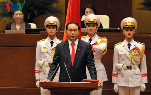 Ông Trần Đại Quang đã đạt số phiếu tín nhiệm 460/465 phiếu để trở thành tân Chủ tịch nước trong cuộc bỏ phiếu tại Quốc hội sáng 2/4. Ông tuyên thệ sẽ hết lòng trung thành với Tổ quốc, với nhân dân.