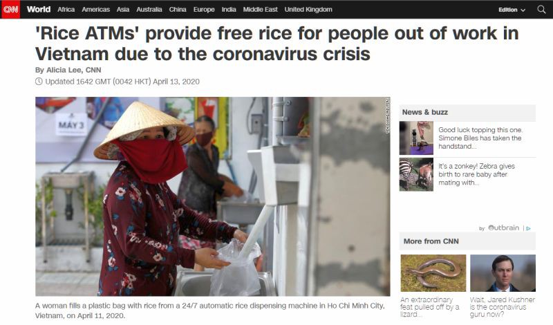 Theo CNN: “Một chiếc máy có thể phát gạo miễn phí - điều này quá khó tin nhưng lại là sự thật. Chiếc máy ATM gạo này đã được lắp đặt tại nhiều địa điểm trên khắp Việt Nam để giúp những người đang cần được hỗ trợ nhất trong đại dịch Covid-19”.