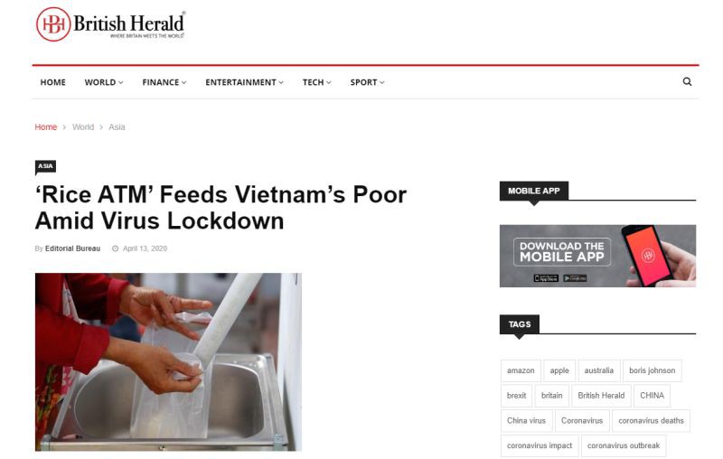 Tờ Bristish Herald của Anh đăng tải lại nội dung bài viết của Reuters về ATM gạo Việt Nam.