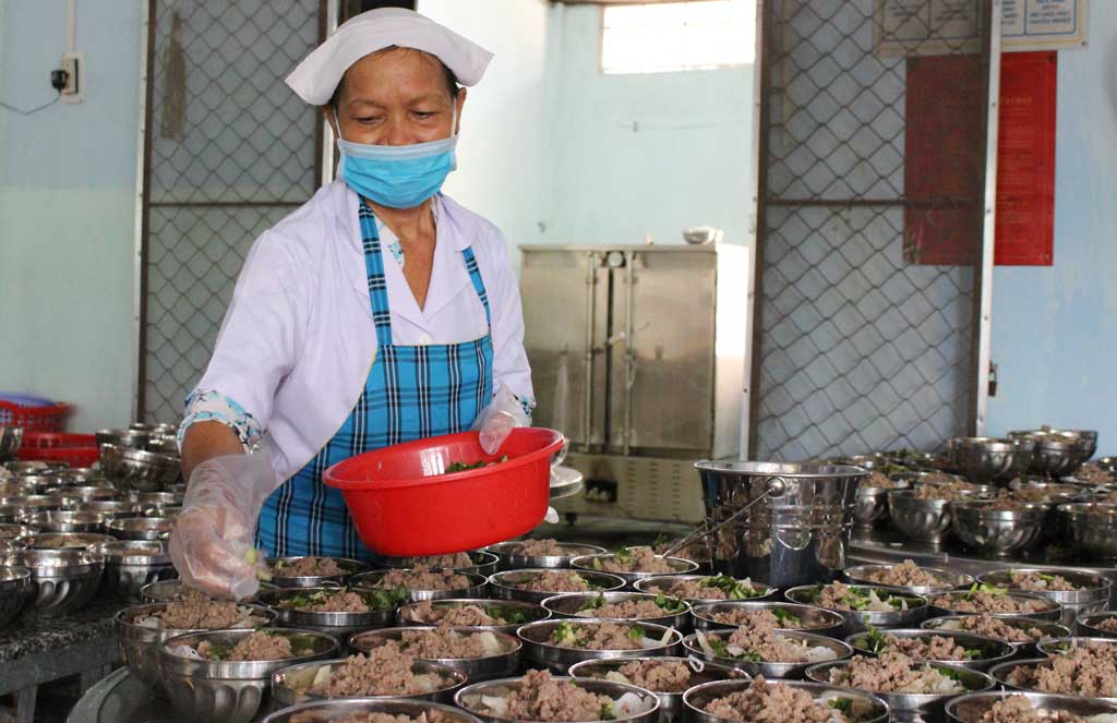 Nhân viên cấp dưỡng của trường được phổ biến các văn bản quy phạm pháp luật, kiến thức thực hành bảo đảm ATTP và khám sức khỏe định kỳ 2 lần/năm. Tổ trưởng Tổ Cấp dưỡng Trường Tiểu học Lý Tự Trọng - Trần Thiện Minh cho biết: “Là người cấp dưỡng, chúng tôi đặc biệt quan tâm bảo đảm ATTP. Do đó, việc tuân thủ mặc quần áo, tạp dề, đội nón, đeo găng tay, khẩu trang,... được thực hiện theo quy định. Nhà trường cũng thực hiện ghi chép sổ kiểm thực phẩm 3 bước, lưu mẫu thức ăn theo đúng quy định”.