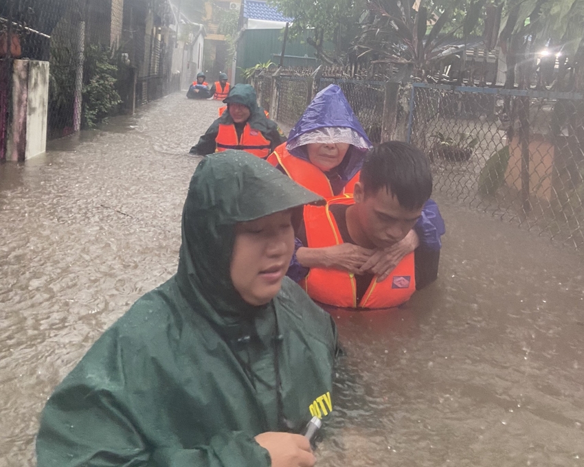 | Cứu hộ người già đến nơi an toàn tại Thừa Thiên Huế (Nguồn ảnh: baothuathienhue.vn) |