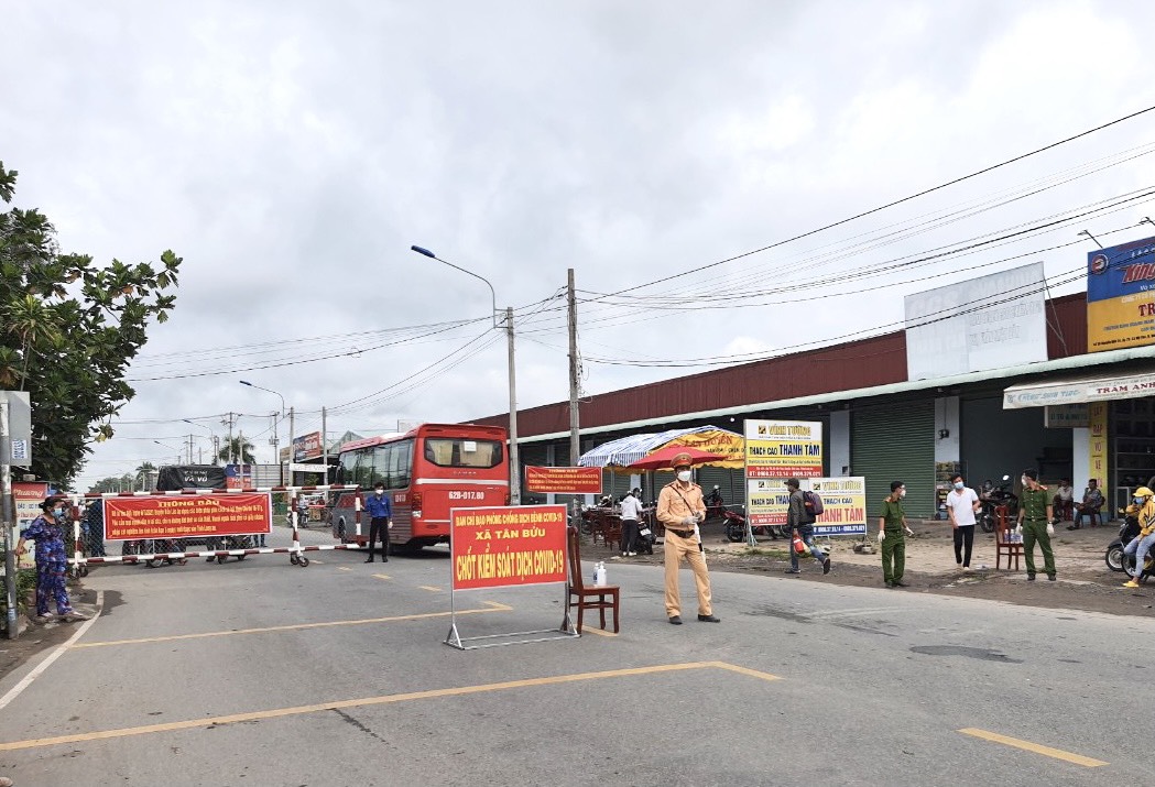 Theo Thượng tá Trương Nhật Minh - Trưởng Công an huyện Bến Lức, tại huyện đang duy trì 4 chốt kiểm soát dịch bệnh Covid-19 trên các tuyến đường trọng yếu, giáp ranh với TP.HCM. Các chốt hoạt động 24/24, chia thành 3 ca để kiểm tra đối với các phương tiện ra ngoài vào địa bàn.