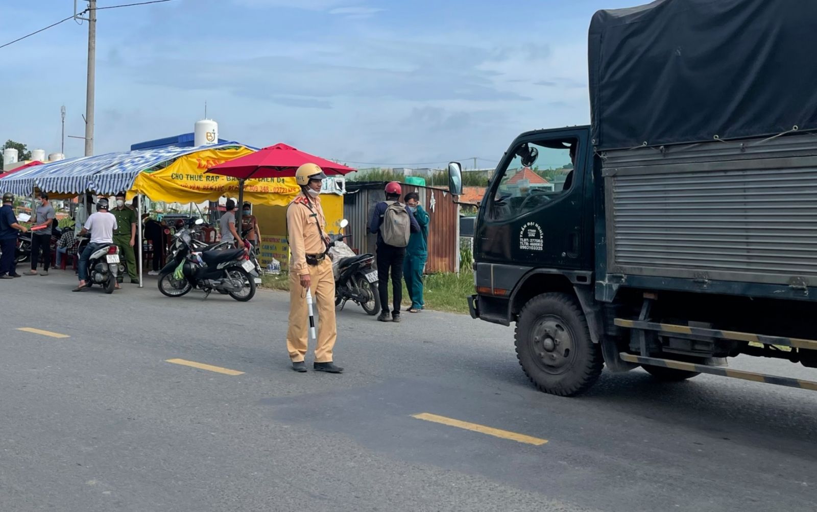 Cảnh sát giao thông làm nhiệm vụ dừng xe kiểm tra tại chốt kiểm soát