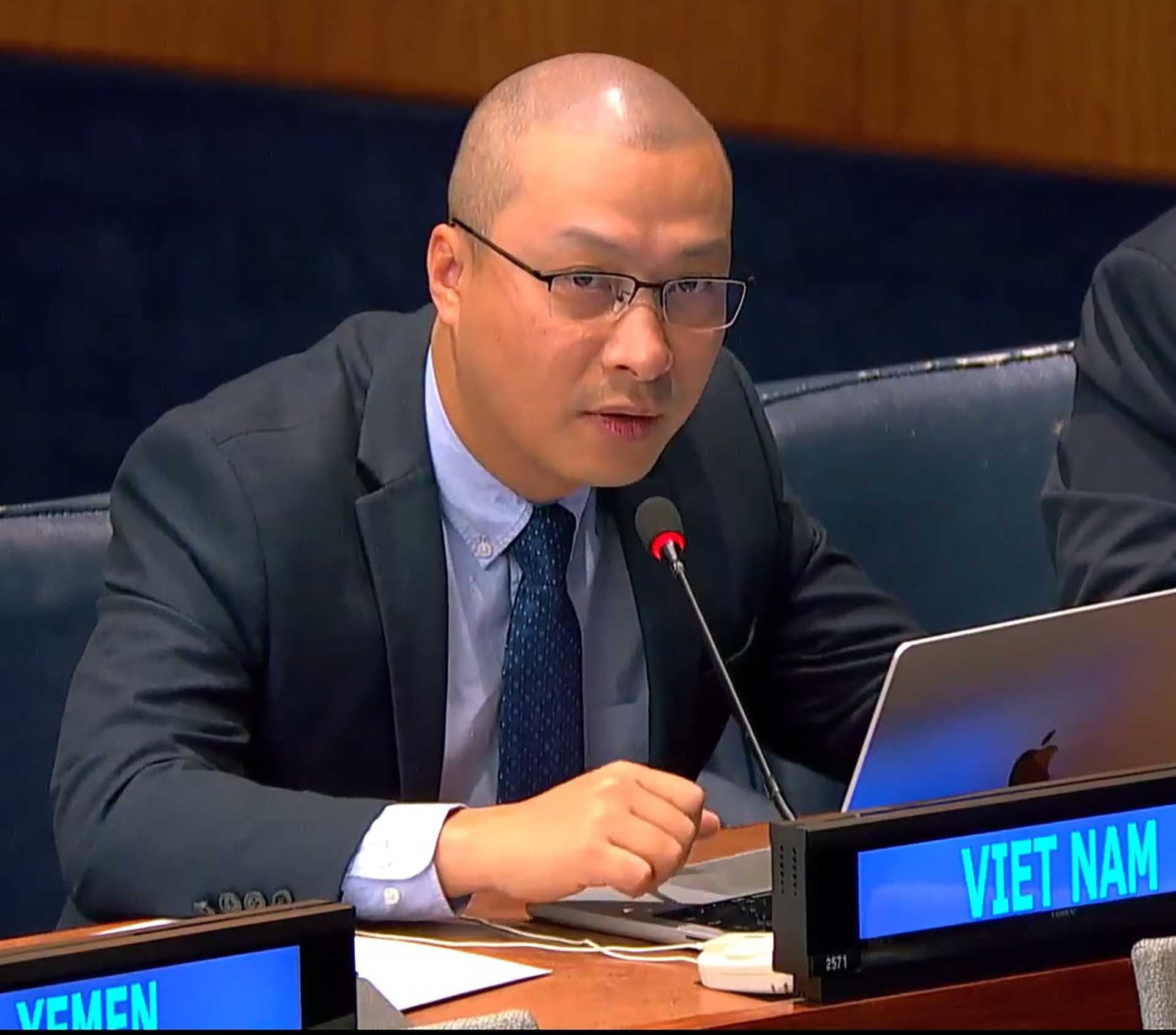 | Tham tán Công sứ Nguyễn Hoàng Nguyên, Phó Trưởng Phái đoàn thường trực Việt Nam tại LHQ phát biểu. |