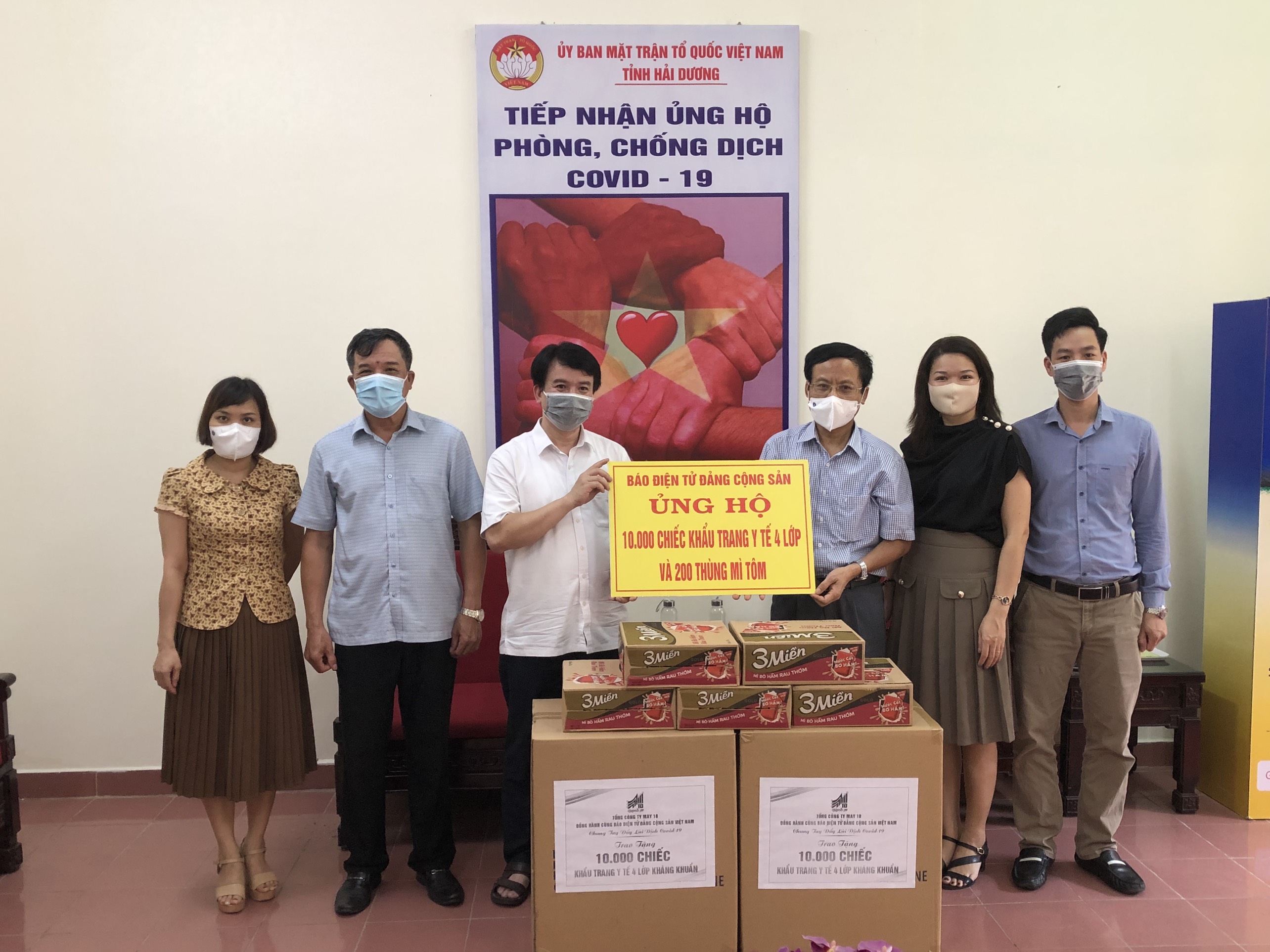 Tại buổi trao, đại diện Công đoàn Báo điện tử Đảng Cộng sản Việt Nam, đồng chí Nguyễn Văn Minh, Chủ tịch Công đoàn Báo cho biết, được biết, Hải Dương là một trong những tỉnh chịu ảnh hưởng của 4 đợt dịch COVID-19, nhất là đợt dịch thứ 3 vừa qua. Với vai trò là cơ quan báo chí Trung ương, trong thời gian qua, Báo đã tích cực tuyên truyền các chủ trương, chính sách của Đảng, Nhà nước; tuyên truyền những chỉ đạo, chính sách của tỉnh Hải Dương về công tác phòng chống COVID-19 cũng như sự nỗ lực của cả hệ thống chính trị, các cấp, các ngành và những hy sinh thầm lặng của các lực lượng các lực lượng tuyến đầu chống dịch; sự kiên cường của Nhân dân trong quá trình chống dịch và đẩy mạnh sản xuất, kinh doanh; sự đồng hành, chung tay của toàn xã hội… trong công tác phòng, chống dịch. Cùng với đó, Báo đã tăng cường kết nối thông tin, kết nối các đơn vị, doanh nghiệp để đồng hành cùng đất nước, cùng các địa phương chống dịch COVID-19. Đồng chí Nguyễn Văn Minh nêu rõ, chia sẻ với tỉnh, thay mặt Công đoàn Báo điện tử Đảng Cộng sản Việt Nam trao tặng món quà ủng hộ công tác phòng, chống dịch COVID –19 trên địa bàn tỉnh Hải Dương.