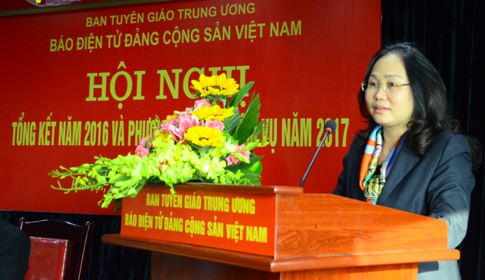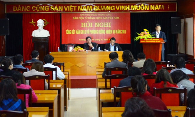 Trình bày Báo cáo tổng kết công tác năm 2016 và phương hướng, nhiệm vụ năm 2017, đồng chí Nguyễn Văn Thắng - Phó tổng Biên tập Báo điện tử Đảng Cộng sản Việt Nam nêu rõ: Năm 2016, Báo điện tử Đảng Cộng sản Việt Nam tiếp tục thể hiện và phát huy tốt vai trò của một cơ quan báo chí Trung ương, thông tin tuyên truyền chính thống về quan điểm, đường lối, chính sách và hoạt động của toàn Đảng, góp phần định hướng dư luận xã hội và làm tốt công tác thông tin, tuyên truyền đối ngoại. Báo đã kịp thời phản ánh khá toàn diện các mặt hoạt động của đời sống chính trị, kinh tế và văn hóa - xã hội trên phạm vi cả nước; góp phần cổ vũ, động viên toàn Đảng, toàn dân, toàn quân thực hiện thắng lợi các nhiệm vụ.