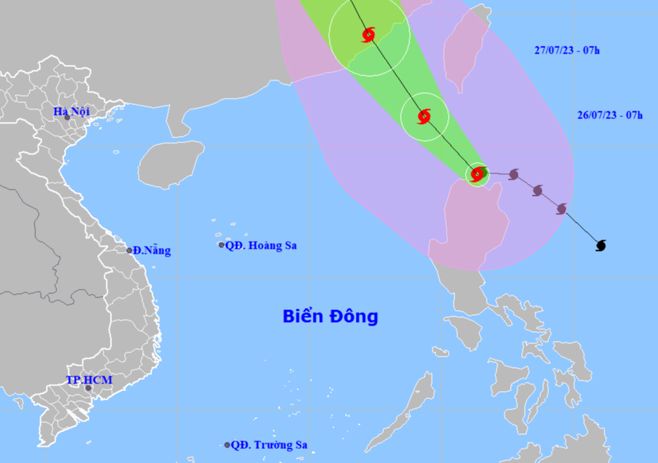 Trung tâm Dự báo khí tượng thuỷ văn quốc gia, hồi 7 giờ ngày 26-7, vị trí tâm bão Doksuri ở vào khoảng 18,9 độ Vĩ Bắc; 121,4 độ Kinh Đông, trên vùng biển phía Bắc đảo Luzon (Philippines). Sức gió mạnh nhất vùng gần tâm bão mạnh cấp 15-16 (167-201 km/giờ), giật trên cấp 17.