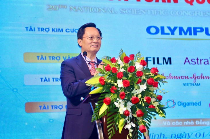 Giáo sư Mai Hồng Bàng - chủ tịch Hội Khoa học tiêu hóa Việt Nam, phát biểu tại hội nghị - Ảnh: T.C.