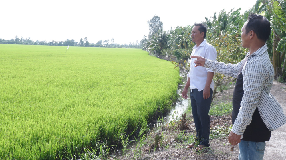 Diện tích lúa nằm trong tuyến đê bao kênh Trấp gieo sạ trễ hơn khu vực khác gần 2 tháng. Điều này làm cho dịch bệnh, sâu rầy phát sinh, ảnh hưởng đến sản xuất của người dân