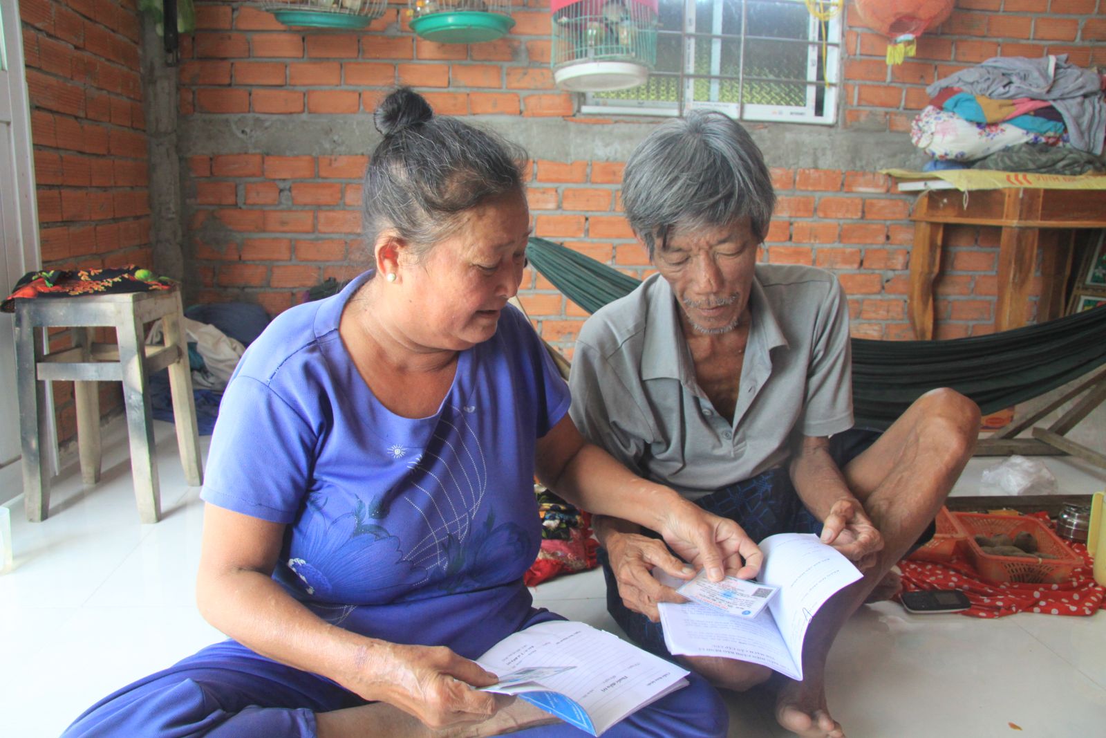 Ông Nguyễn Phước Hải và bà Võ Thị Kim Thoa sử dụng bảo hiểm y tế để lấy thuốc mỗi tháng