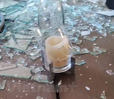 Đồ đạc trong nhà đổ vỡ do ảnh hưởng từ vụ nổ. (Nguồn: Vietnam+)