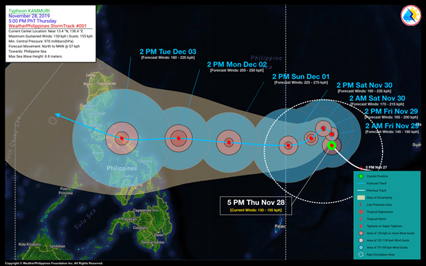 Đường đi dự kiến của bão Kammuri. (Ảnh: WeatherPH)