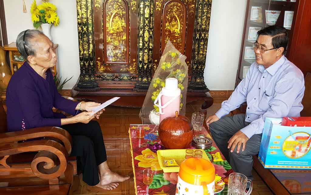Phó Tổng Biên tập Báo Long An - Lê Hồng Thương ân cần thăm hỏi và chúc mẹ sống vui, sống khỏe, tiếp tục giáo dục truyền thống cách mạng của gia đình, quê hương cho thế hệ trẻ./.