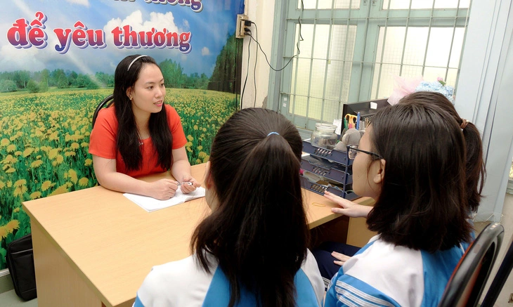 Cần nhiều hơn các phòng tư vấn tâm lý học đường. Trong ảnh: một buổi tư vấn tâm lý cho học sinh Trường THPT Trần Phú, quận Tân Phú, TP.HCM - Ảnh: NHƯ HÙNG