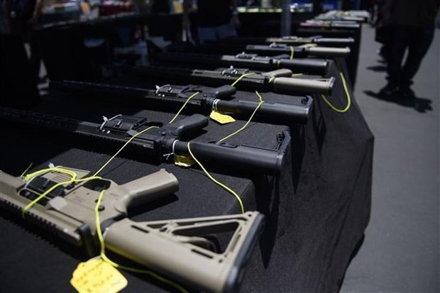 | Súng được bày bán tại một cửa hàng ở Costa Mesa, bang California (Mỹ). (Ảnh: AFP/TTXVN) |