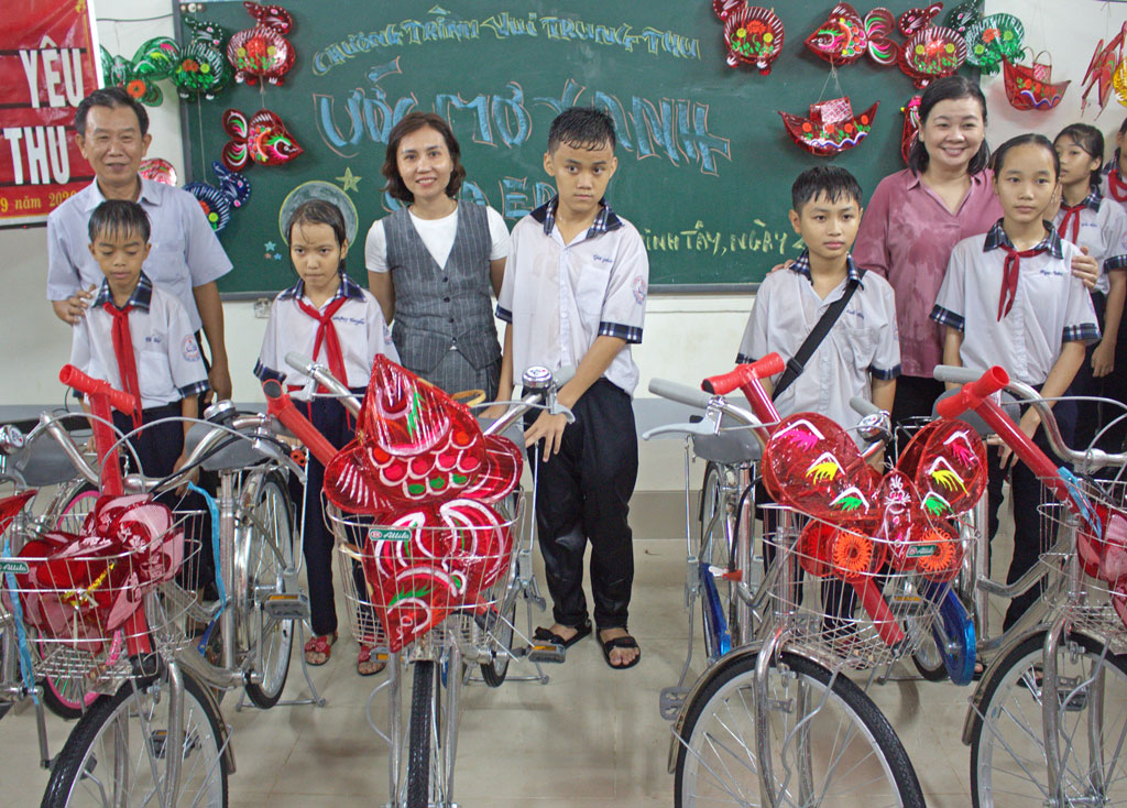 Tại đây, đơn vị trao tặng 40 chiếc xe đạp và 320 phần quà cho các em. Mỗi phần quà gồm dụng cụ học tập, bánh trung thu và lồng đèn với tổng kinh phí trên 140 triệu đồng.