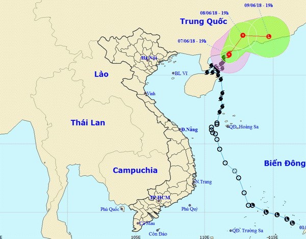 Đến 19 giờ ngày 8/6, vị trí tâm áp thấp nhiệt đới ở khoảng 22,9 độ Vĩ Bắc; 112,8 độ Kinh Đông, trên khu vực phía Tây Nam tỉnh Quảng Đông (Trung Quốc). Sức gió mạnh nhất vùng gần tâm áp thấp nhiệt đới mạnh cấp 6-7 (40-60 km/giờ), giật cấp 8.