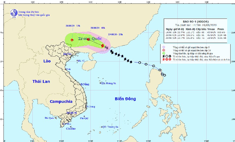 Hồi 13h ngày 19/8, vị trí tâm bão ở vào khoảng 22,7 độ Vĩ Bắc; 112,1 độ Kinh Đông, trên khu vực phía Nam tỉnh Quảng Đông (Trung Quốc). Sức gió mạnh nhất vùng gần tâm bão mạnh cấp 8 (60-75km/giờ), giật cấp 10. Bán kính gió mạnh từ cấp 6, giật từ cấp 8 trở lên khoảng 100km tính từ tâm bão.