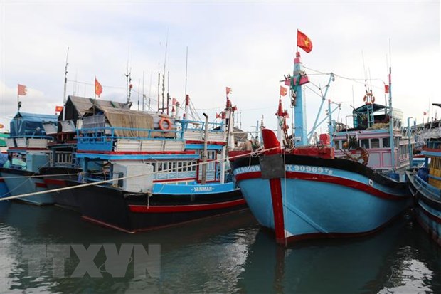 Tàu thuyền neo đậu tránh bão tại cảng cá Cà Ná (xã Cà Ná, huyện Thuận Nam). (Ảnh: Nguyễn Thành/TTXVN)