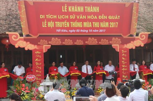 Khu đền Quát đã tồn tại hơn 700 năm, đến thế kỷ XVII-XVIII đền được tôn tạo khang trang và được tu sửa nhiều lần vào triều Nguyễn với khuôn viên rộng 2700m2. Khu di tích đền Quát được xếp hạng là Di tích cấp quốc gia vào ngày 28/1/1989. Từ năm 2010 đến nay, được sự quan tâm của các cấp chính quyền, sự đóng góp của du khách và nhân dân địa phương, đền Quát đã được trùng tu, tôn tạo, nâng cấp các hạng mục với kinh phí hàng chục tỷ đồng. Đến nay, khuôn viên khu Di tích lịch sử quốc gia đền Quát khá khang trang...