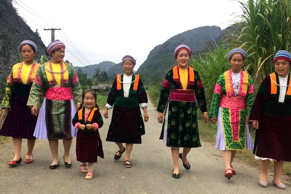 Trang phục của phụ nữ dân tộc Mông được dệt từ vải lanh. (Ảnh: Báo Hà Giang)