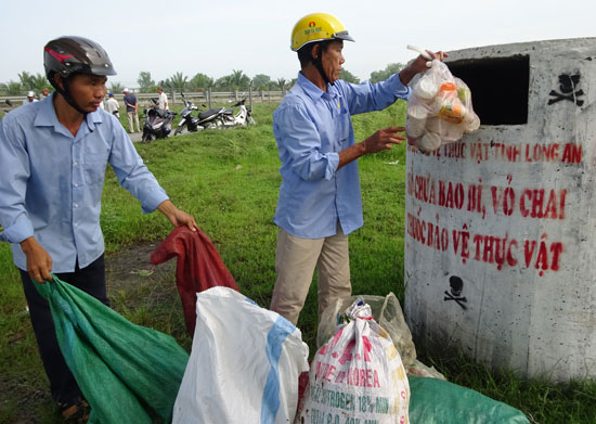 Năm 2015, Chi đoàn Chi cục BVTV, Sở Nông nghiệp và Phát triển nông thôn tỉnh tổ chức nhiều đợt ra quân thu gom bao bì thuốc BVTV, tuyên truyền biện pháp xử lý đúng cách và hiệu quả cho nông dân. Chi cục BVTV tỉnh còn xây dựng các hố chứa bao bì thuốc BVTV. Hiện tại, trên địa bàn TP.Tân An và các huyện Châu Thành, Cần Đước, Cần Giuộc đã xây dựng 15 hố chứa bao bì thuốc BVTV đã sử dụng.