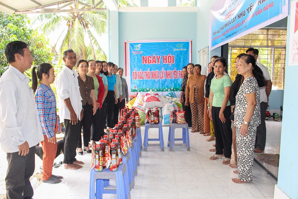 Ngày hội “Đổi rác thải nhựa lấy nhu yếu phẩm” của phụ nữ xã Cù Lao Dung.