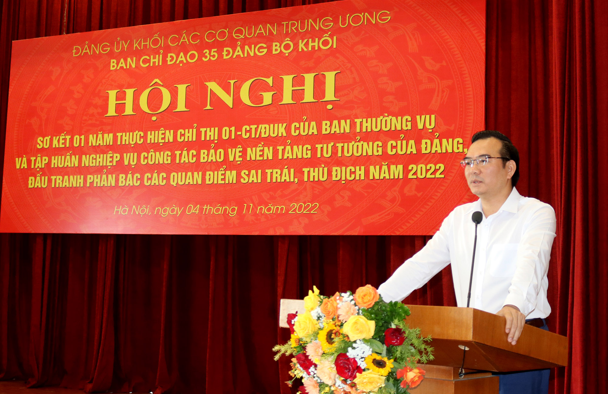 Sáng 4/11, tại Hà Nội, Đảng ủy Khối các cơ quan Trung ương tổ chức Hội nghị sơ kết 01 năm thực hiện Chỉ thị số 01-CT/ĐUK của Ban Thường vụ Đảng ủy Khối và tập huấn nghiệp vụ công tác bảo vệ nền tảng tư tưởng của Đảng, đấu tranh phản bác các quan điểm sai trái, thù địch năm 2022.