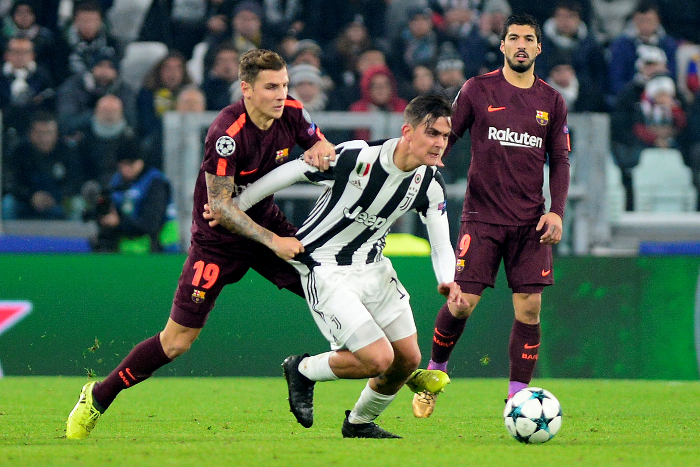 Một pha tranh bóng trong trận Barcelona hòa Juventus 0-0. Ảnh: Reuters