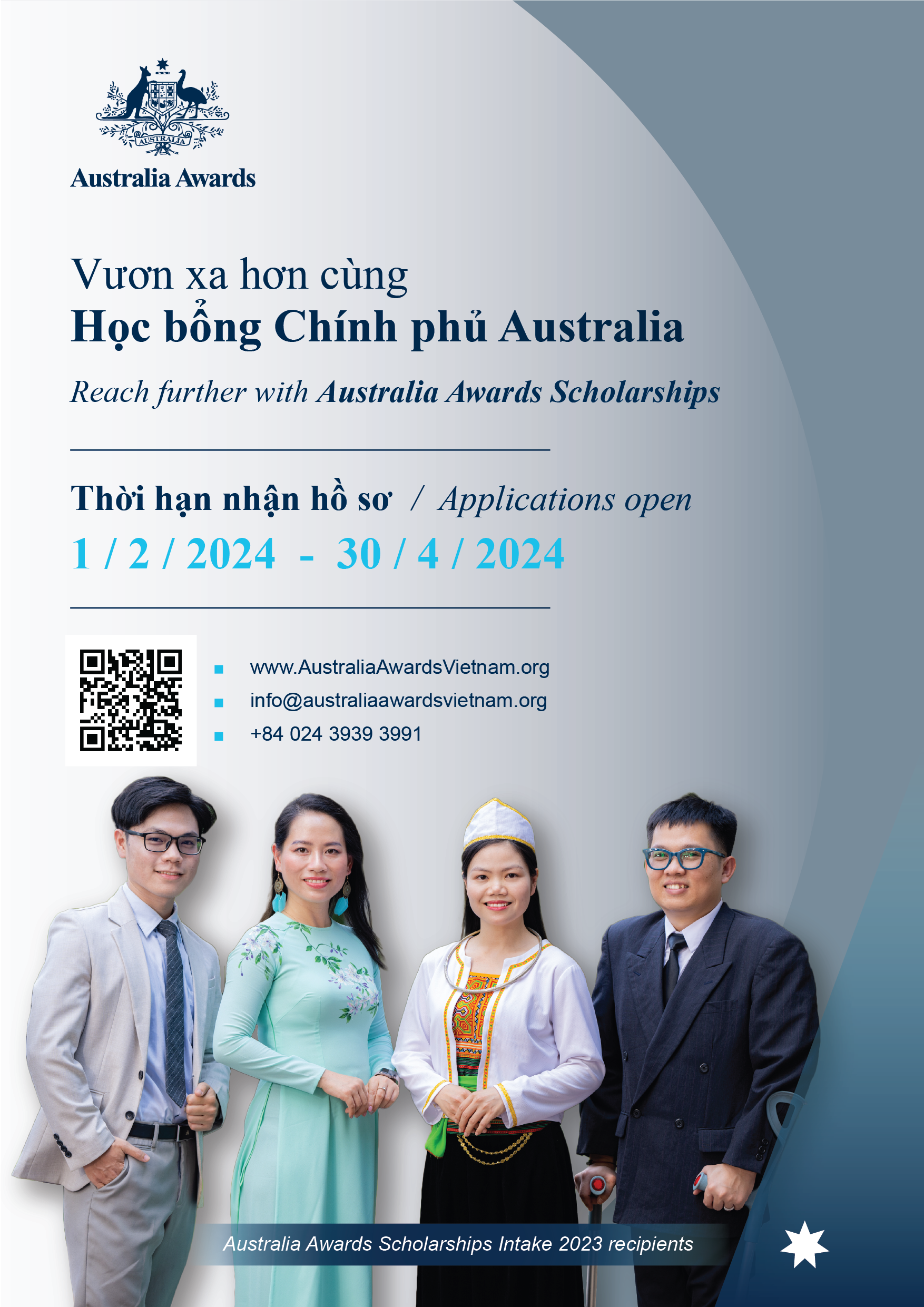 Đại sứ quán Australia tại Việt Nam ngày 1/2 cho biết, Chương trình Học bổng Chính phủ Australia (AAS) nhập học năm 2025 đã bắt đầu nhận hồ sơ của các ứng viên. Chi tiết về học bổng này và tiêu chí xét duyệt có tại: www.AustraliaAwardsVietnam.org. Ứng viên nộp hồ sơ trực tuyến tại https://oasis.dfat.gov.au. Kết quả sẽ được công bố vào tháng 8/2024.
