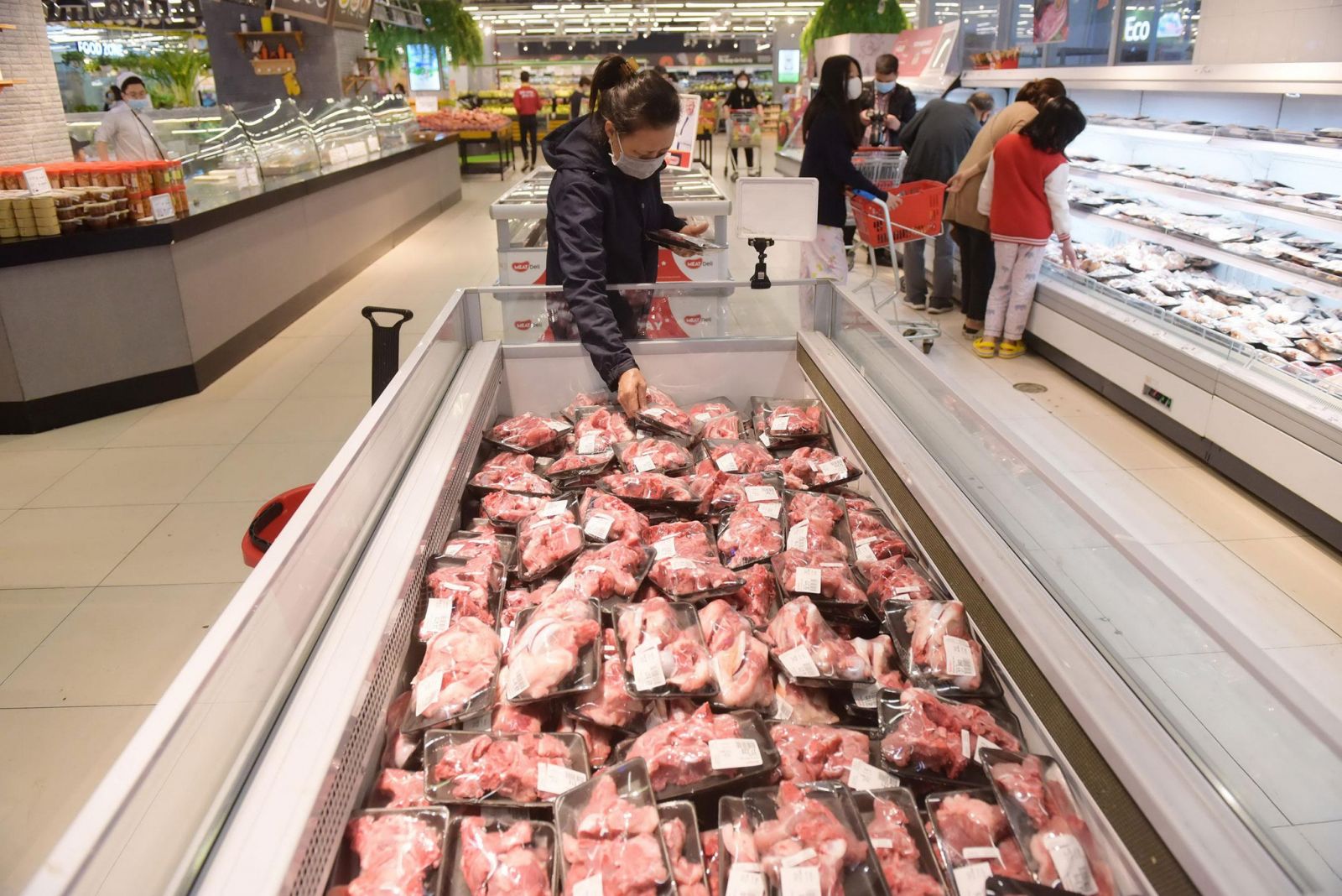 Giá thịt heo thành phẩm không giảm tương ứng như mức giảm của giá heo hơi. Ảnh NGỌC THẮNG