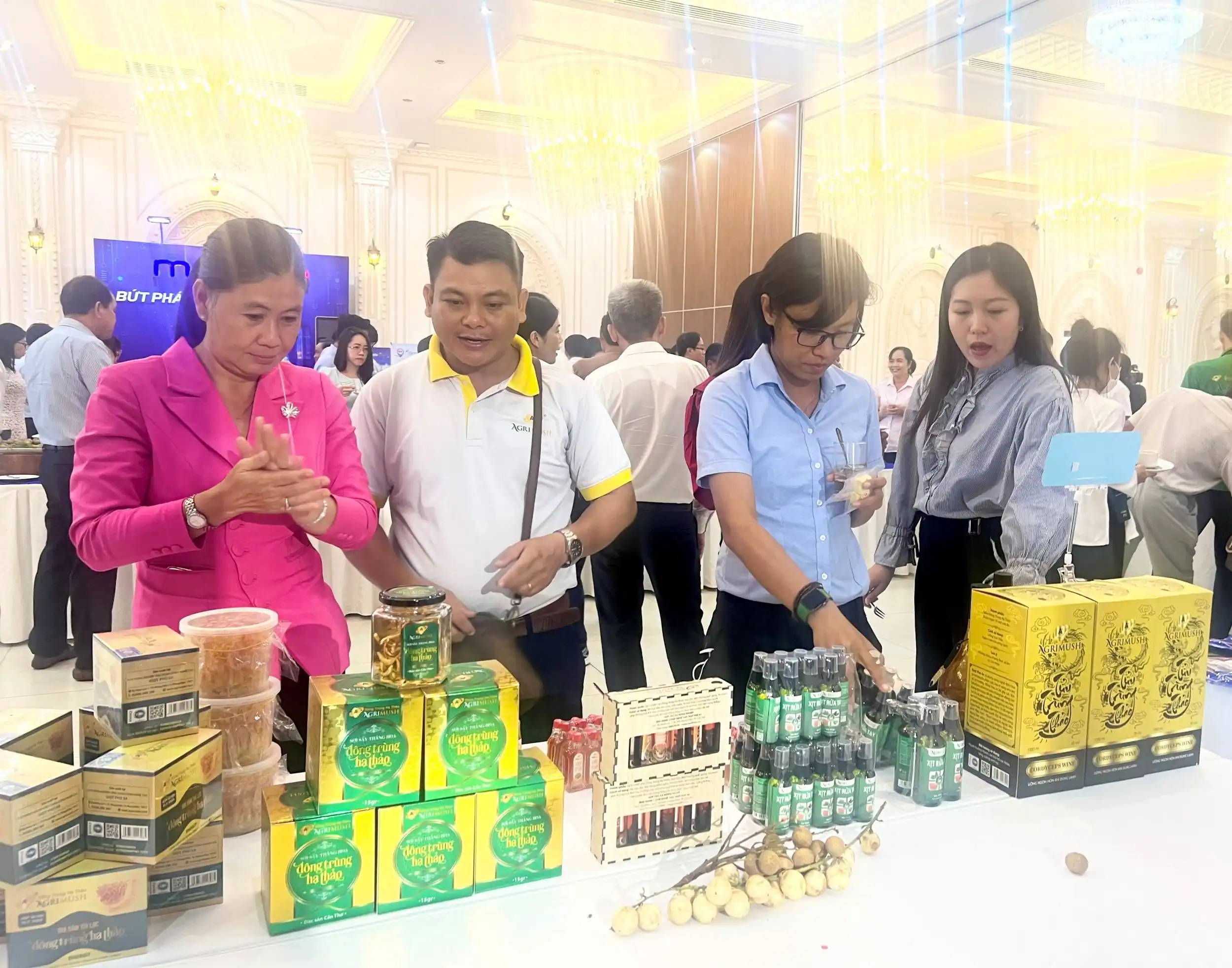 HTX Giọt Phù Sa, huyện Phong Ðiền tham gia trưng bày, giới thiệu sản phẩm đạt chứng nhận OCOP tại một hội nghị do ngành chức năng thành phố tổ chức.