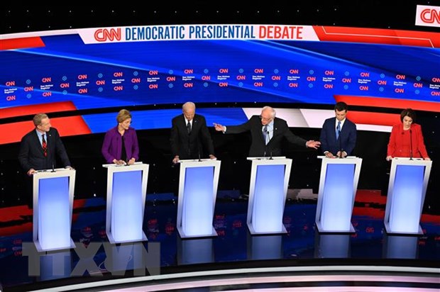 Các ứng viên Tổng thống của đảng Dân chủ tham gia cuộc tranh luận trực tiếp cuối cùng tại Des Moines, bang Iowa (Mỹ) sáng 15/01. (Ảnh: AFP/TTXVN)