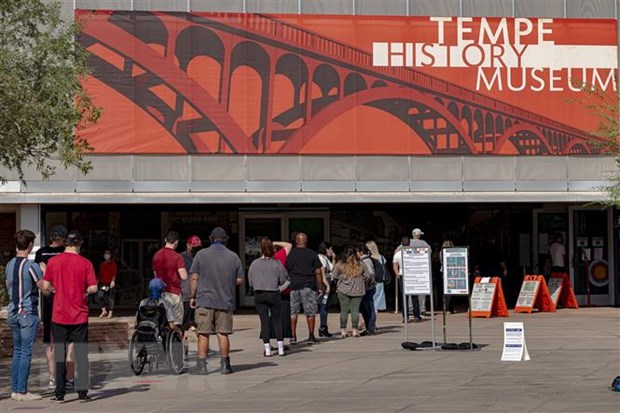 Cử tri Mỹ xếp hàng chờ bỏ phiếu trong Ngày Bầu cử tại điểm bỏ phiếu ở Tempe, bang Arizona, ngày 3/11. (Ảnh: AFP/TTXVN)