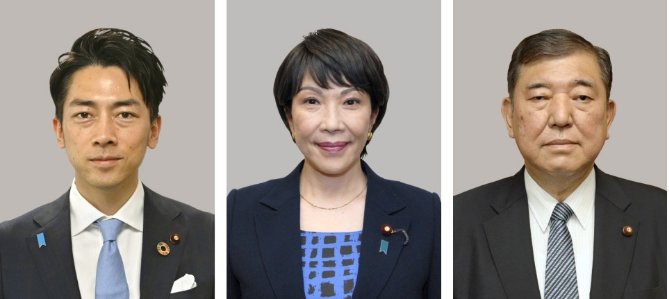 | 3 ứng cử viên tạm dẫn đầu theo kết quả thăm dò (từ trái qua phải) gồm Shinjiro Koizumi, Sanae Takaichi và Shigeru Ishiba. (Ảnh: Kyodo) |