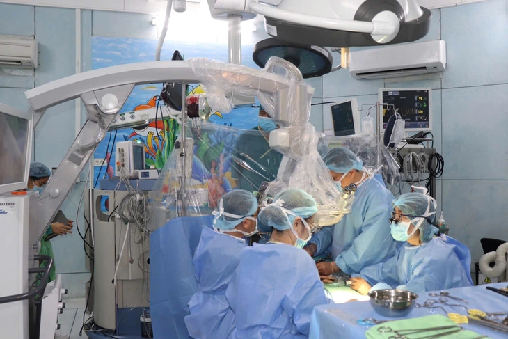 Các bác sĩ Bệnh viện Nhi Đồng 2 đang ghép gan cho bệnh nhi - Ảnh: Bệnh viện cung cấp