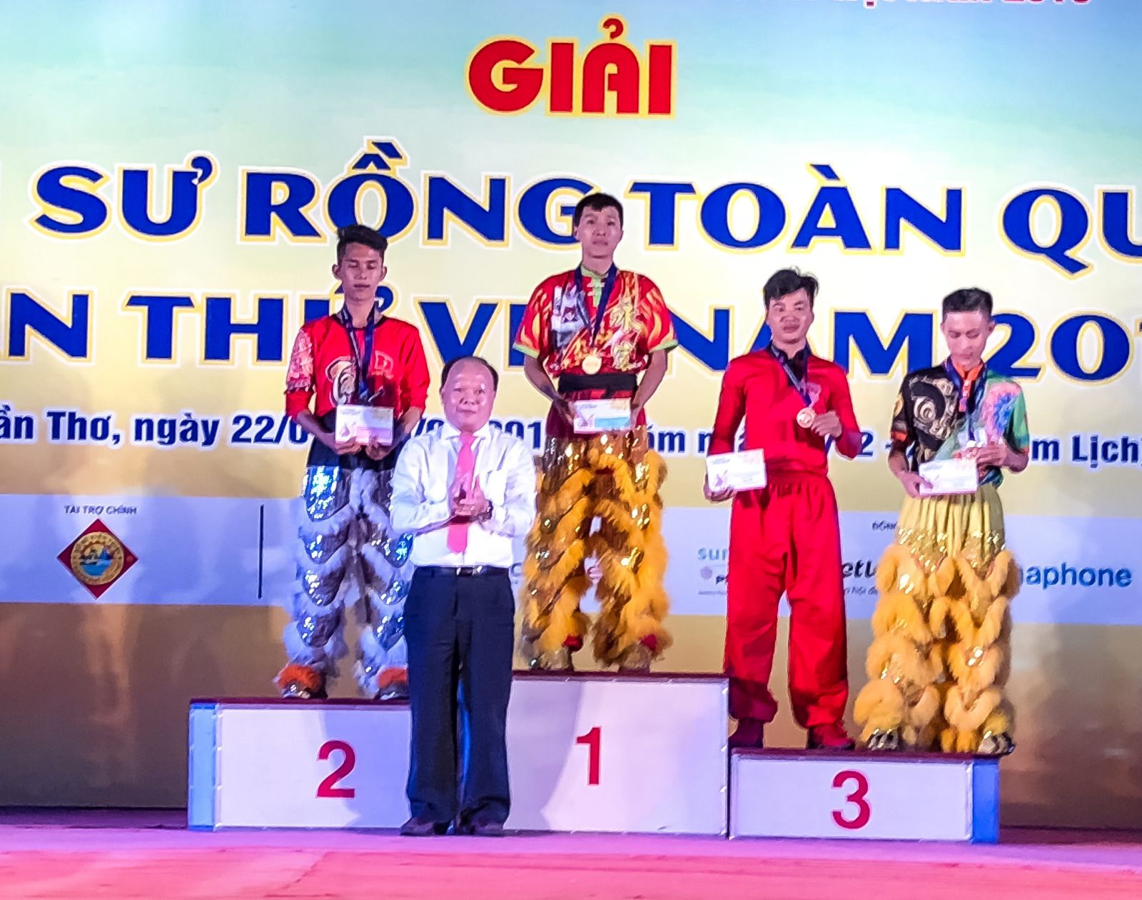 Ông Phạm Văn Luận, Phó Giám đốc Sở Văn hoá, Thể thao và Du lịch TP Cần Thơ, trao giải cho các VĐV đạt giải Lân trên Mai hoa thung nam.