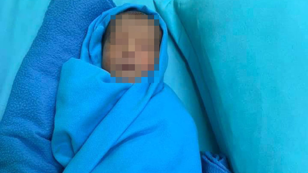 Thời điểm được tìm thấy, bé trai khoảng 2 tuần tuổi được quấn trong một chiếc khăn màu xanh, trên mặt có nhiều nốt đỏ nghi là bị côn trùng cắn.