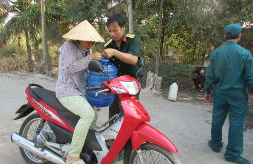 Ban Chỉ huy quân sự huyện huy động hơn 30 chiến sĩ, lực lượng dân quân tự vệ, xe máy, bình chứa để đưa nước đến tận nhà dân nhất là gia đình chính sách, neo đơn, hộ có hoàn cảnh khó khăn. Còn đối với các hộ có điều kiện thì vận động người dân đến điểm tập kết để chở nước về sử dụng.