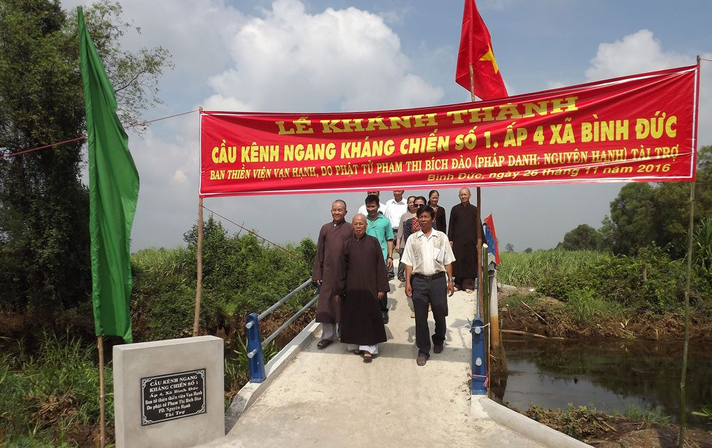 Ngày 26/11, huyện Bến Lức, tỉnh Long An tổ chức khánh thành cầu Kênh Ngang Kháng Chiến Số 1 tại địa bàn ấp 4, xã Bình Đức với tổng trị giá 140 triệu đồng. Trong đó, các mạnh thường quân ủng hộ trên 110 triệu đồng, phần còn lại do nhân dân địa phương đóng góp. Cây cầu rộng 2,5m, dài 28m, tải trọng 1,5 tấn, có lang cang bảo vệ, thời gian thi công 65 ngày (do nhân dân địa phương đóng góp ngày công xây dựng).