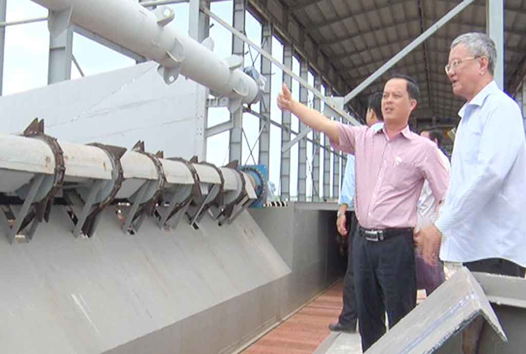 Đoàn cán bộ huyện có dịp tham quan dây chuyền sản xuất của nhà máy, dự kiến đưa vào hoạt động trong tháng 11/2017, với công suất 350 ngàn tấn/niên vụ./.