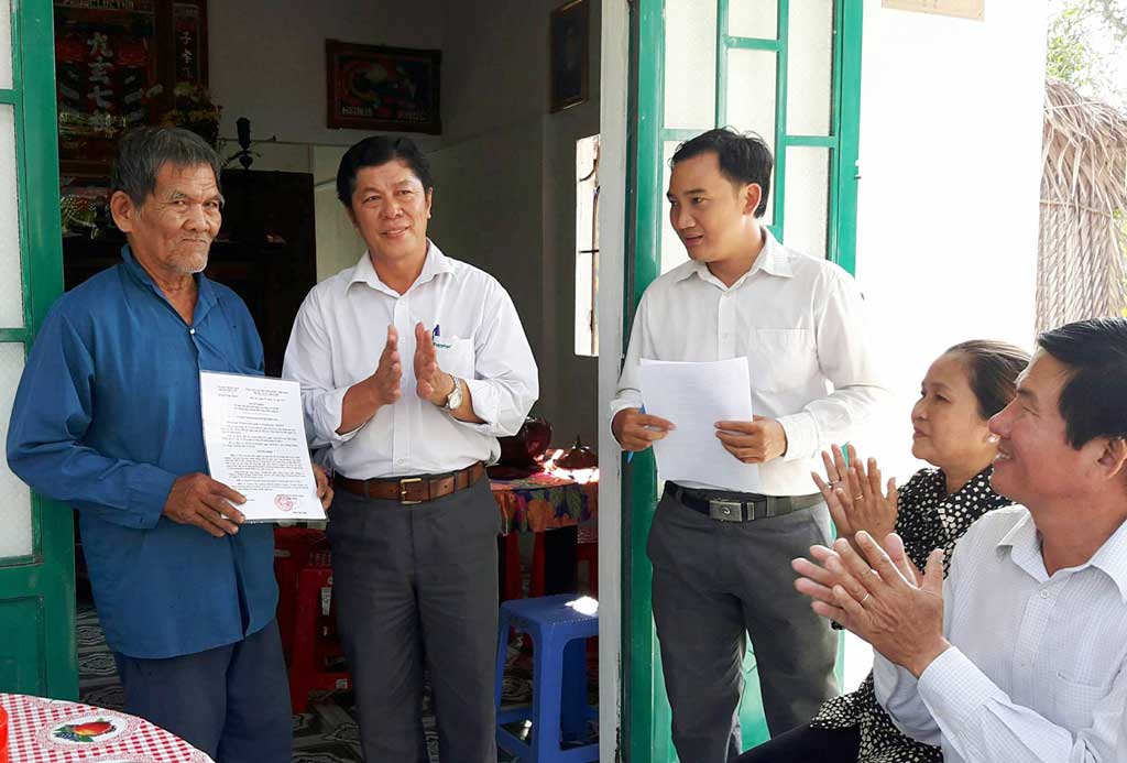 Lãnh đạo địa phương trao quyết định và tặng quà cho gia đình ông Lê Văn Bé, người có công với cách mạng, ngụ ấp 8, xã Lương Hòa