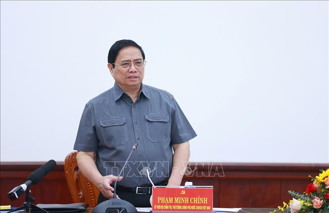 | Thủ tướng Phạm Minh Chính phát biểu chỉ đạo tại buổi làm việc. Ảnh: TTXVN. |