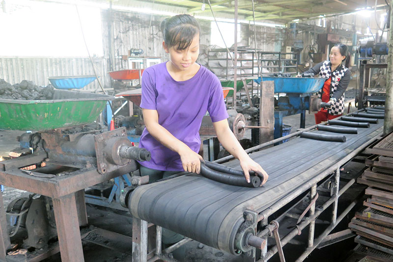 | Nghề sản xuất than BBQ tại xã AnThạnh, huyện Mỏ Cày Nam, tỉnh Bến Tre. (Ảnh: T. Thảo) |