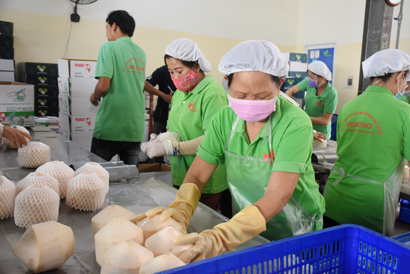 | Sơ chế dừa uống nước tiêu thụ thị trường ngoài nước. |