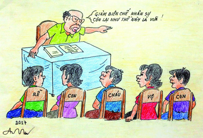 Đồng tình về vấn đề này, ông Tô Quang Phán, Tổng Giám đốc Đài Phát thanh Truyền hình Hà Nội cho biết, Đài Phát thanh Truyền hình Hà Nội hiện có hơn 719 người (nhiều người nhất trong các đài địa phương), trong đó có hơn 500 biên chế, 200 hợp đồng. Trong 500 biên chế ấy có gần 140 người là cán bộ chủ chốt. Thực tế, chưa có cơ quan truyền thông nào cán bộ chủ chốt nhiều như thế. Đáng chú ý, trong hơn 700 người làm tại đài chỉ có khoảng 60% cán bộ đủ năng lực làm việc tốt. "40% cán bộ yếu kém cũng không bỏ được, không loại được vì là con ông này, cháu bà kia từ Trung ương trở xuống thành phố”, ông Tô Quang Phán nói.