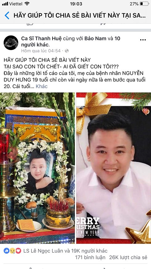 Trên mạng xã hội Facebook đang lan truyền một bài viết của một Việt Kiều Mỹ tự nhận là mẹ của bệnh nhân Nguyễn Duy Hưng, 19 tuổi (ngụ Đồng Nai) tố cáo bệnh viện Chợ Rẫy đã tắc trách trong quá trình cấp cứu, điều trị nên con mình đã tử vong sau 24 ngày nhập viện. Chiều 14/9, Bệnh viện Chợ Rẫy đã họp báo lên tiếng phản bác thông tin này.