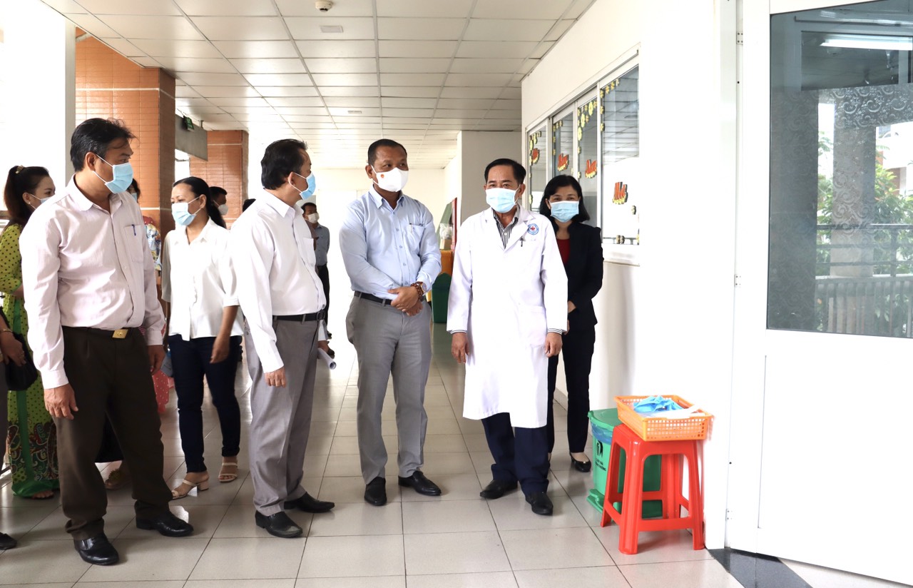 Bí thư Huyện ủy Cần Giuộc - Trương Thanh Liêm (thứ 2, phải qua) cùng đại biểu thăm Cơ sở lọc thận - Bệnh viện Đa khoa khu vực Cần Giuộc