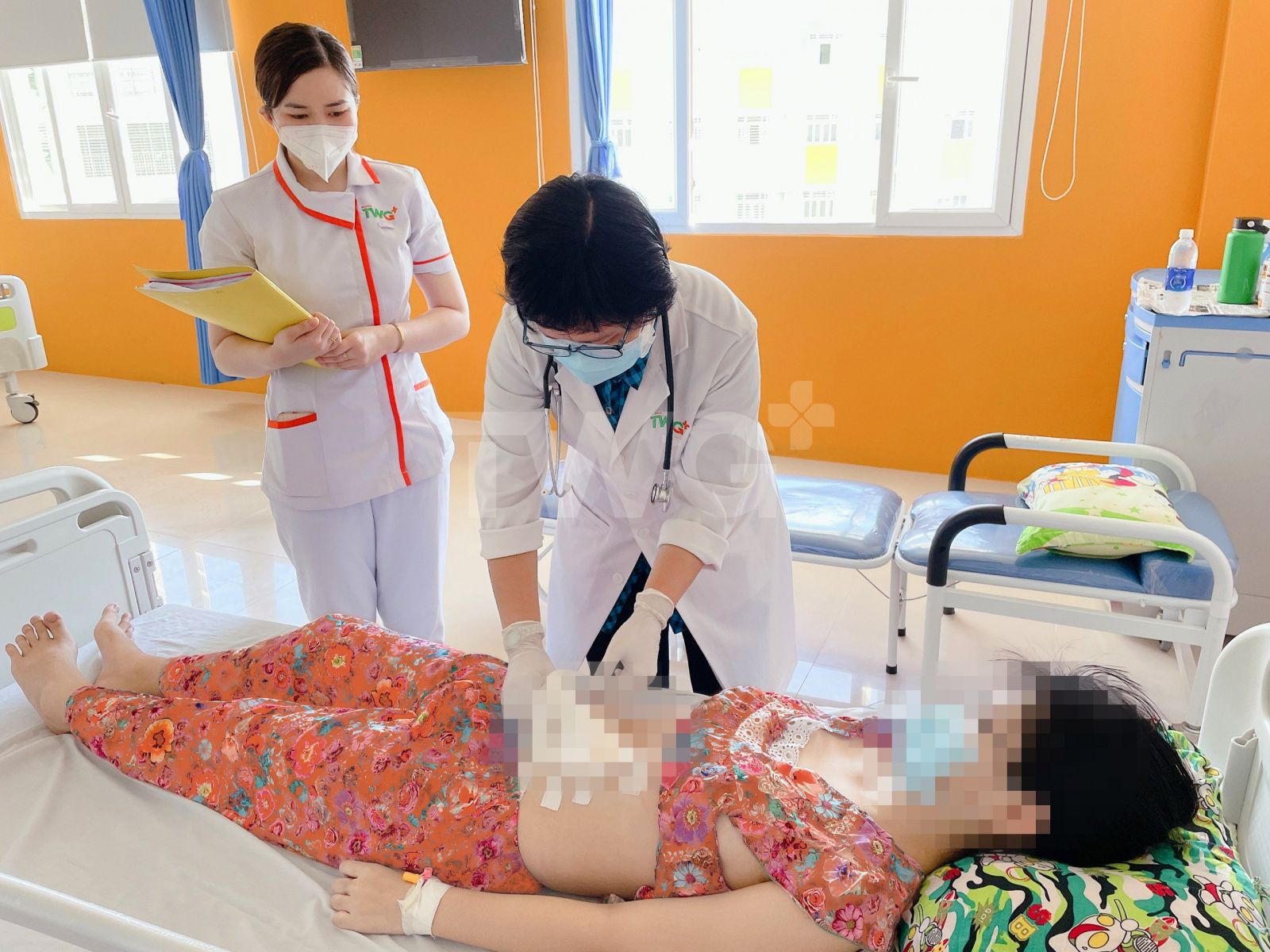 Bác sĩ thăm khám sức khỏe bệnh nhi sau phẫu thuật